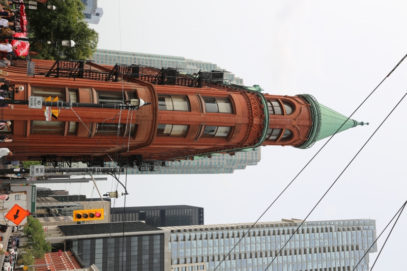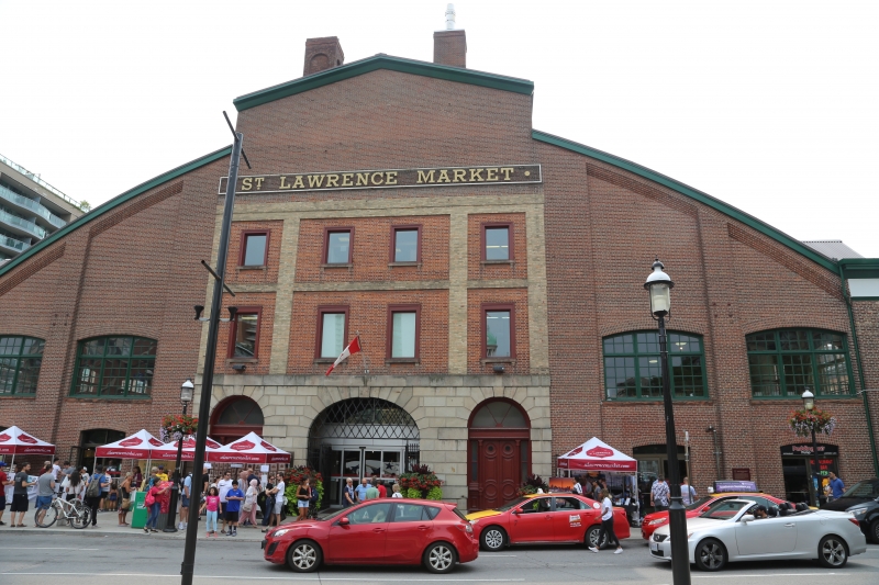 My first stop today was the St. Lawrence Market.  It’s  one of the largest food courts  and farmers’ markets in the world.  Of particular interest was the stand that advertised that Anthony Bourdain, Emeril, and Guy Fieri had eaten one of their  Peameal Bacon sandwiches.  For those of you who are salivating at the thought of a bacon sandwich, be aware that Canadian bacon bears no resemblance to the bacon we are used to in the States.  It is a good sandwich, just not what I expected.