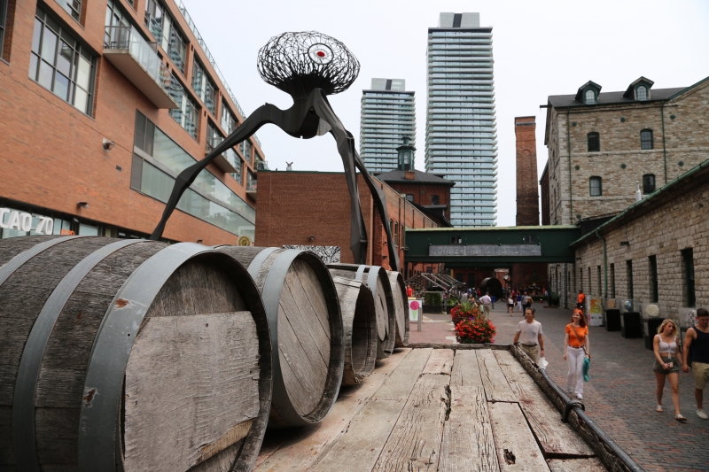 The next stop was the Distillery Historic District.  It is about a twenty minute hike from the St. Lawrence Market.  The District is a group of old distillery and warehouse buildings that now house restaurants, brew pubs, art galleries, boutique clothing stores, and a performing art center.  It’s a great place to grab a bite, have a beer, and do some people watching.